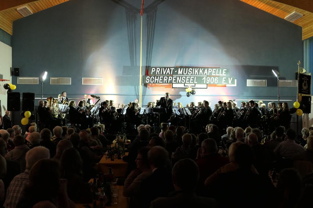 Das Jahr 2016 – ein besonderes für die Privat Musikkapelle Scherpenseel, in dem der Verein auf 110 Jahre Vereinsgeschichte zurückblicken kann. Nach dem das Jahr mit einem konzertanten Auftakt im Pädagogischen Zentrum Übach-Palenberg begonnen wurde, sollte im September das Jubiläum gebührend gefeiert werden. Nach monatelanger Vorbereitung und dank der tatkräftigen Unterstützung vieler Musikerinnen und Musiker stand das Wochenende im September ganz unter dem Motto „Wir feiern uns!“. Und das in dem Stadtteil, der für den Musikverein seit 110 Jahren Dreh- und Angelpunkt seiner Arbeit und Namensgeber ist.