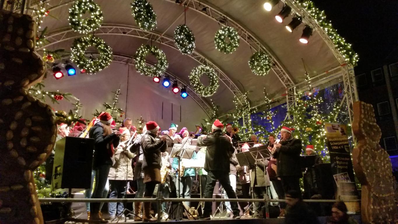 Wie bereits in den letzten Jahren, so spielte das Orchester der Privat-Musikkapelle Scherpenseel auch in diesem Jahr wieder auf dem Aachener Weihnachtsmarkt. Am Dienstag, dem 08. Dezember spielte das Orchester ab 19.00 Uhr Platzkonzert auf der Bühne am Katschhof. Dabei durften die sich die Besucher des Weihnachtsmarkts über verschiedenste Weihnachtslieder freuen. Von klassischen deutsch Weihnachtslieder wie "Morgen kommt der Weihnachtsmann", "Oh du fröhliche" oder "Alle Jahre wieder" bis zu modern arrangierten, internationalen Weihnachtslieder wie "Rudolph the red nosed reindeer" und "Feliz Navidad" war für jeden etwas im Repertoire. Die von Jan de Haan für Blasorchester arrangierten Stücke "Young Amadeus", "Tochter Zion" und "Macht hoch die Tür" bildeten dabei die Höhepunkte des Konzerts.