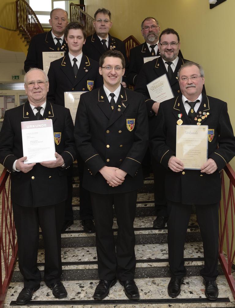 Während Reinhard Schreiber die Ehrung für 25 Jahre bei der PMS empfing, standen für die weiteren Jubilare Jan-Philipp Flecken (zehn Jahre), Lambert Pongs (30 Jahre), Dieter Kasper und Fred Lowis (jeweils 40 Jahre), Dirigent Günter Preuth (50 Jahre) und Willi Peters (60 Jahre) jeweils gleichzeitig die Ehrungen zur Mitgliedschaft bei der PMS und dem Volksmusikerbund auf dem Programm.