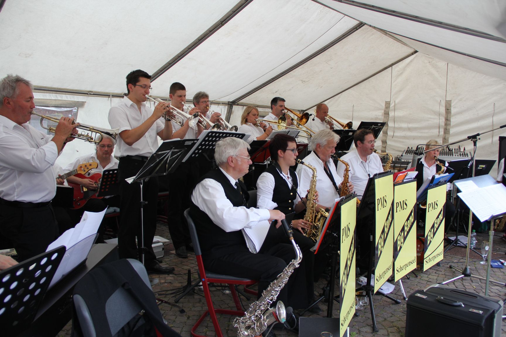 Vor dieser tollen Kulisse konnte auch die Privat-Musikkapelle Scherpsenseel ihr Können unter Beweis stellen. Mit einer Gruppe von 35 Musikerinnen und Musikern lief der Verein auf und konnte das Publikum musikalisch voll überzeugen.
