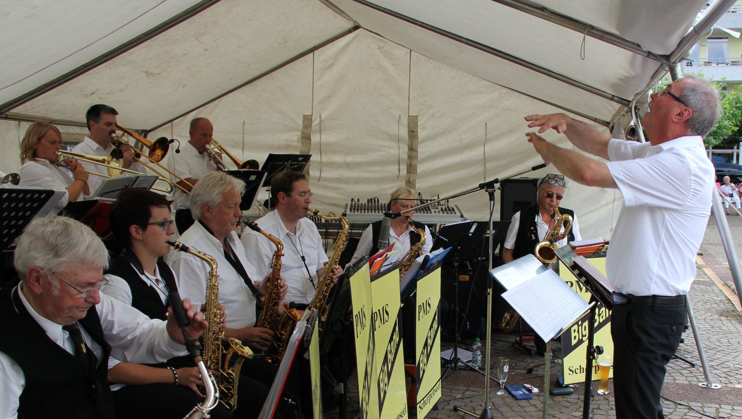 Die Big-Band der Privat-Musikkapelle unter der Leitung von Günter Preuth sorgte an diesem Tag mit einem 3 stündigen Programm für Kurzweil und Unterhaltung der Radfahrerinnen und Radfahrer, die den Rathausplatz anfuhren.